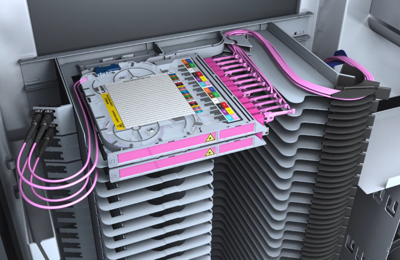 • Consolidation of the entire fiber optic infrastructure in one easy-to-manage location (as recommended by TIA/IEC)